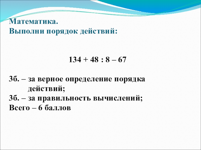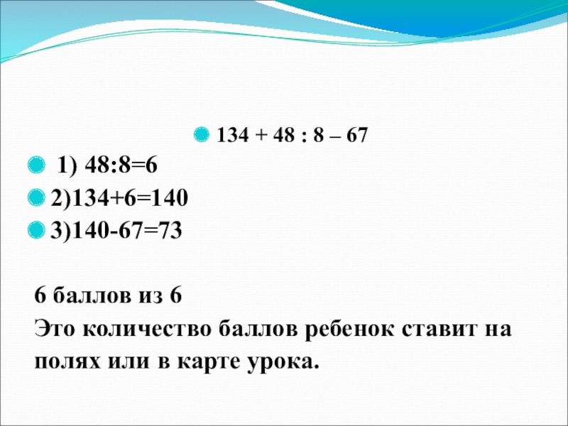 Слайд 12134 + 48 : 8 – 67