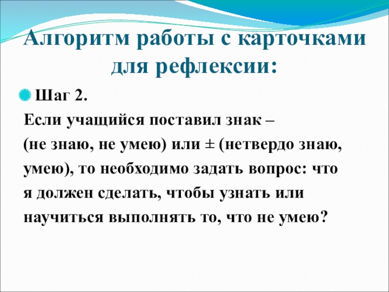 Слайд 17Алгоритм работы с карточками для рефлексии: