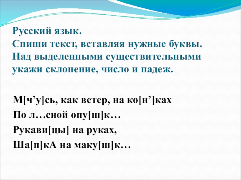 Спиши текст, вставляя нужные буквы.