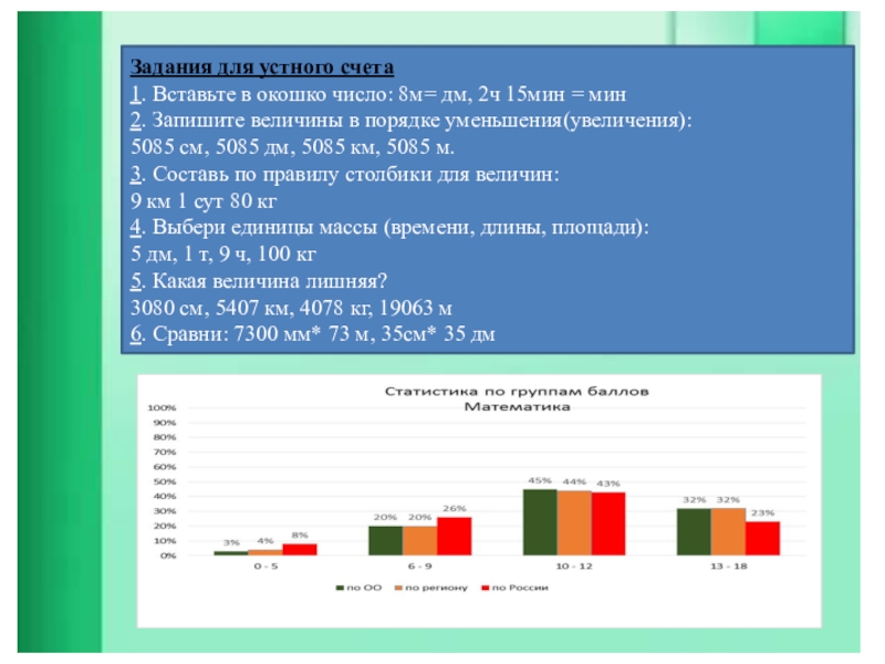 Приведу пример работы с учащимися по теме: «Формирование умения у учащихся читать, записывать, сравнивать величины, используя основные единицы измерения»