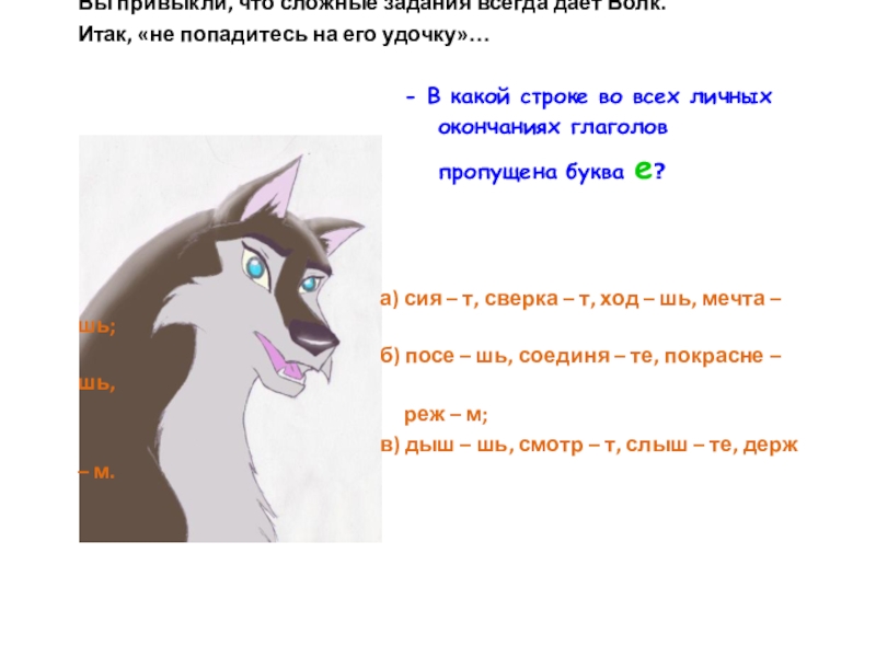 6.Закрепление.Вы привыкли, что сложные задания всегда дает Волк. Итак, «не попадитесь на его удочку»…