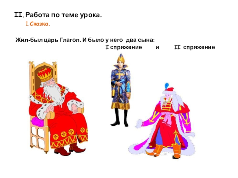 Слайд 3II.Работа по теме урока. 1.Сказка. Жил-был царь Глагол.