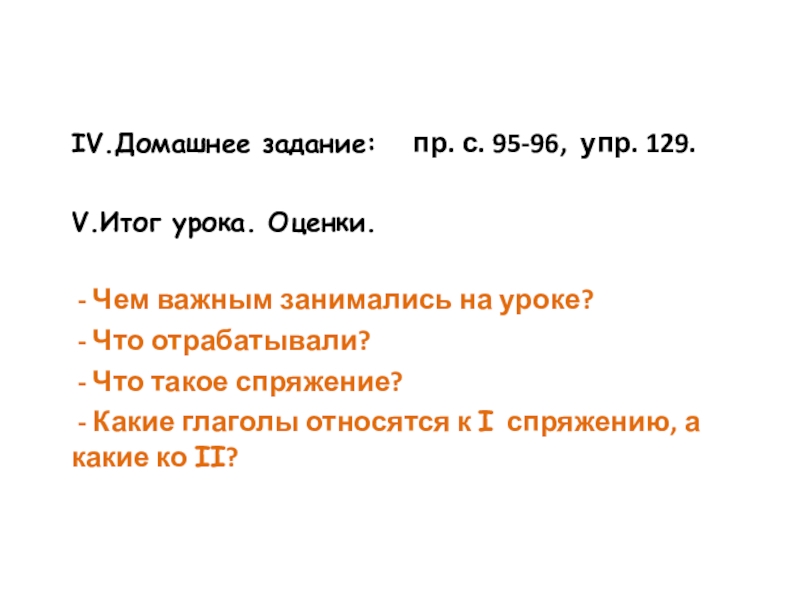 Слайд 10IV.Домашнее задание: пр. с. 95-96, упр. 129.