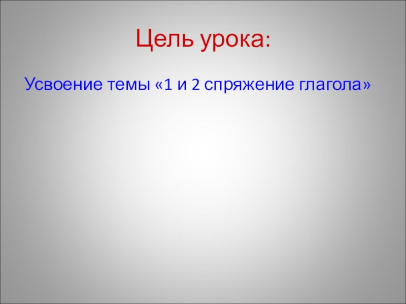 Цель урока:Усвоение темы «1 и 2 спряжение глагола»