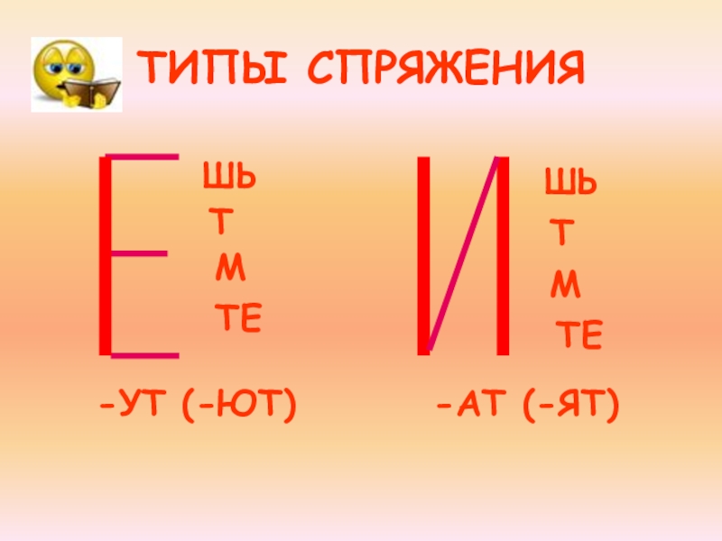 ТИПЫ СПРЯЖЕНИЯШЬТМТЕ-УТ (-ЮТ)ШЬТМТЕ-АТ (-ЯТ)