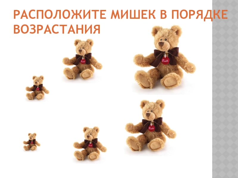 Слайд 3РАСПОЛОЖИТЕ МИШЕК В ПОРЯДКЕ ВОЗРАСТАНИЯ