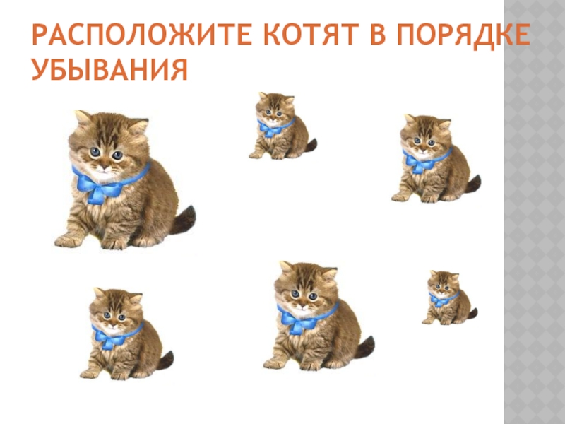 Слайд 4РАСПОЛОЖИТЕ КОТЯТ В ПОРЯДКЕ УБЫВАНИЯ