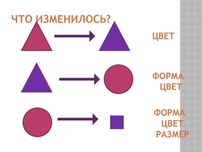 ЧТО ИЗМЕНИЛОСЬ?ЦВЕТФОРМАЦВЕТФОРМАЦВЕТРАЗМЕР