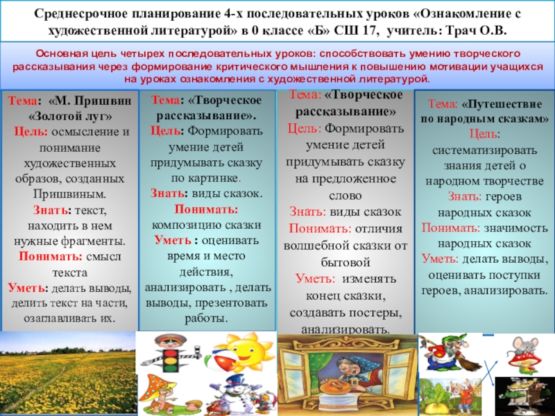 Основная цель четырех последовательных уроков: способствовать умению творческого рассказывания через формирование критического мышления к повышению мотивации учащихся на уроках ознакомления с художественной литературой.