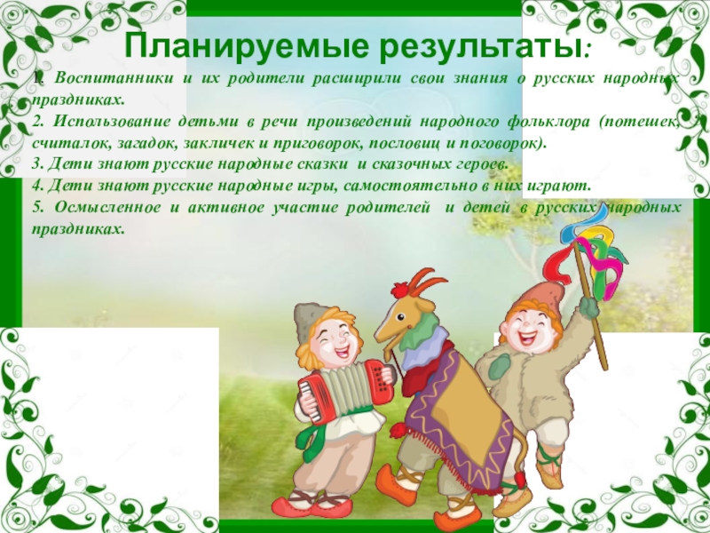 5. Осмысленное и активное участие родителей и детей в русских народных праздниках.