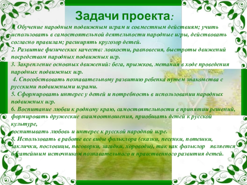 1. Обучение народным подвижным играм и совместным действиям; учить