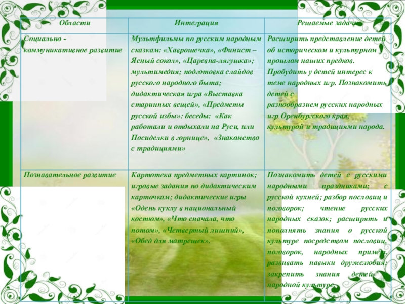 формировать дружеские взаимоотношения, приобщать детей к русской культуре,