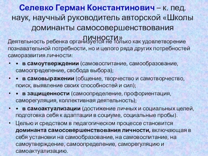 Слайд 26Селевко Герман Константинович – к. пед. наук, научный руководитель авторской «Школы