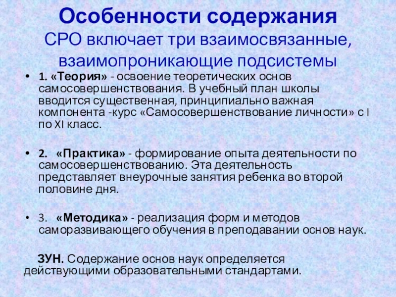 ЗУН. Содержание основ наук определяется действующими образовательными стандартами.