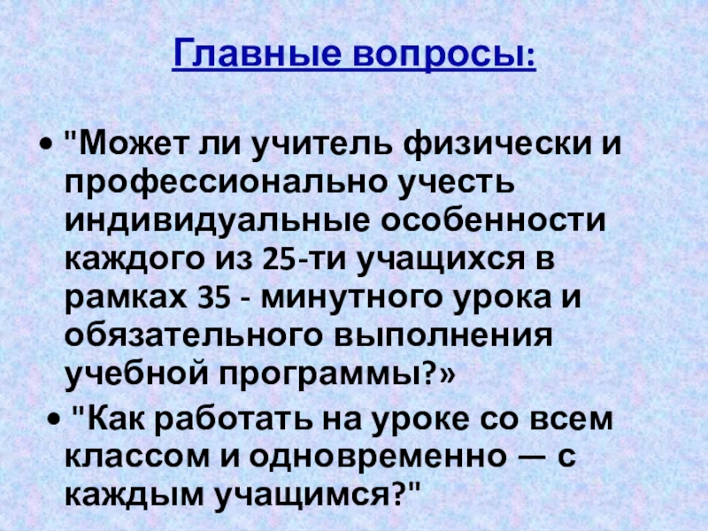 • "Может ли учитель физически и профессионально учесть индивидуальные особенности