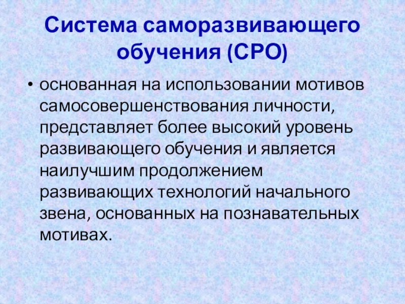 высокий уровень развивающего обучения и является наилучшим продолжением развивающих технологий начального звена, основанных на познавательных мотивах.