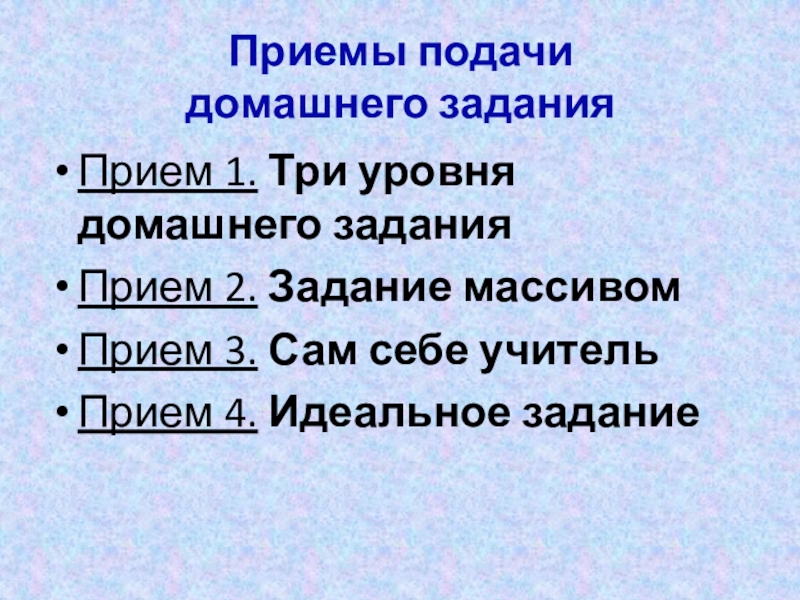 Цель: создание условий для развития познавательной активности учащихся посредством использования технологических идей уровневой дифференциации.