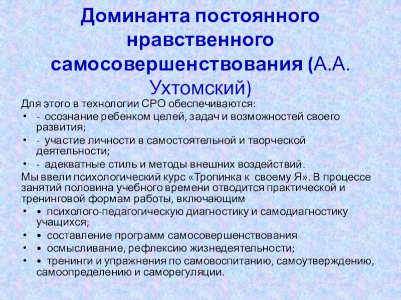 Слайд 29Доминанта постоянного нравственного самосовершенствования (А.А.Ухтомский)