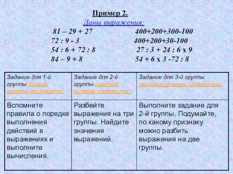 84 – 9 + 8 54 + 6 х 3 -72 : 8