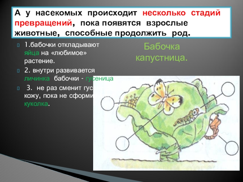 1.бабочки откладывают яйца на «любимое» растение.