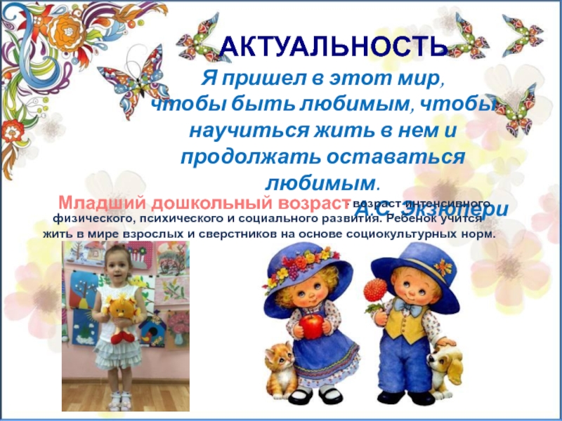 - возраст интенсивного физического, психического и социального развития. Ребенок учится жить в мире взрослых и сверстников на основе социокультурных норм.