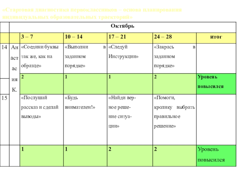 «Стартовая диагностика первоклассников – основа планирования индивидуальных образовательных траекторий»