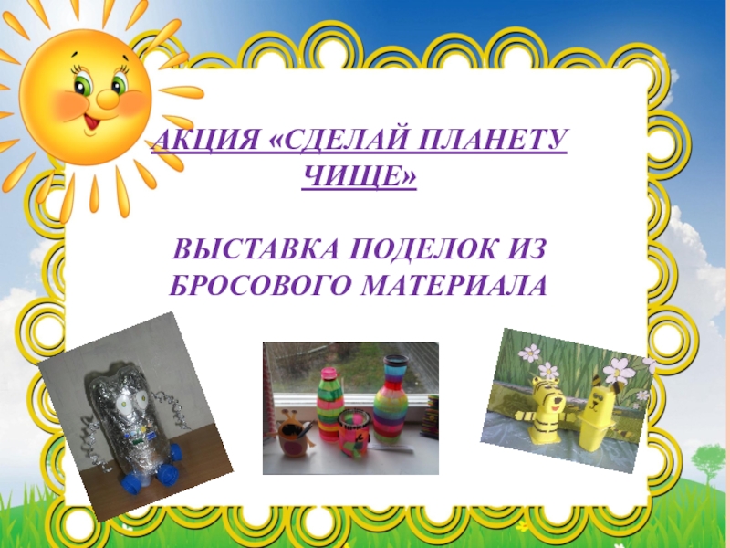Слайд 8АКЦИЯ «СДЕЛАЙ ПЛАНЕТУ ЧИЩЕ» ВЫСТАВКА ПОДЕЛОК ИЗ БРОСОВОГО МАТЕРИАЛА