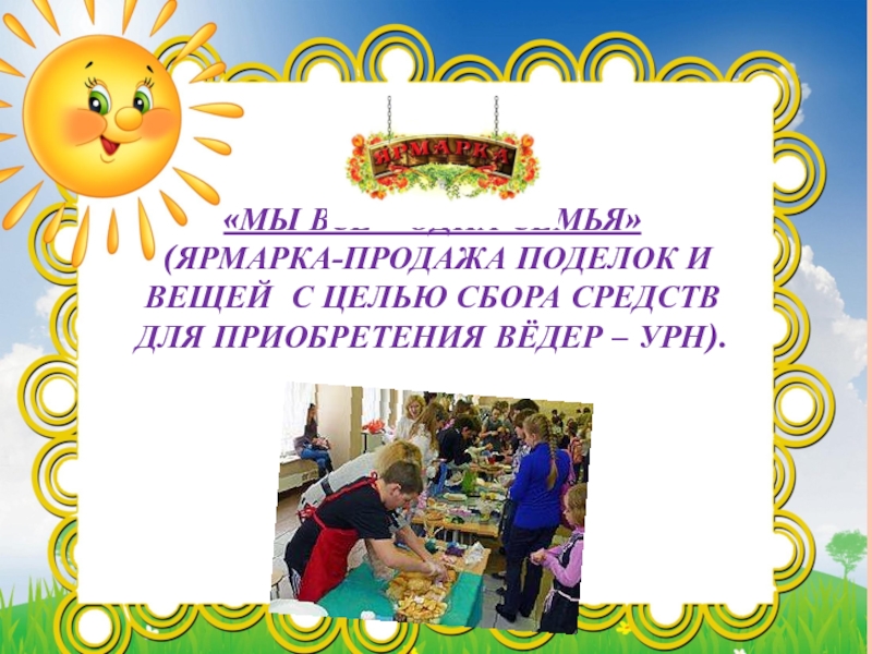 Слайд 9«МЫ ВСЕ – ОДНА СЕМЬЯ» (ЯРМАРКА-ПРОДАЖА ПОДЕЛОК И ВЕЩЕЙ С ЦЕЛЬЮ СБОРА СРЕДСТВ