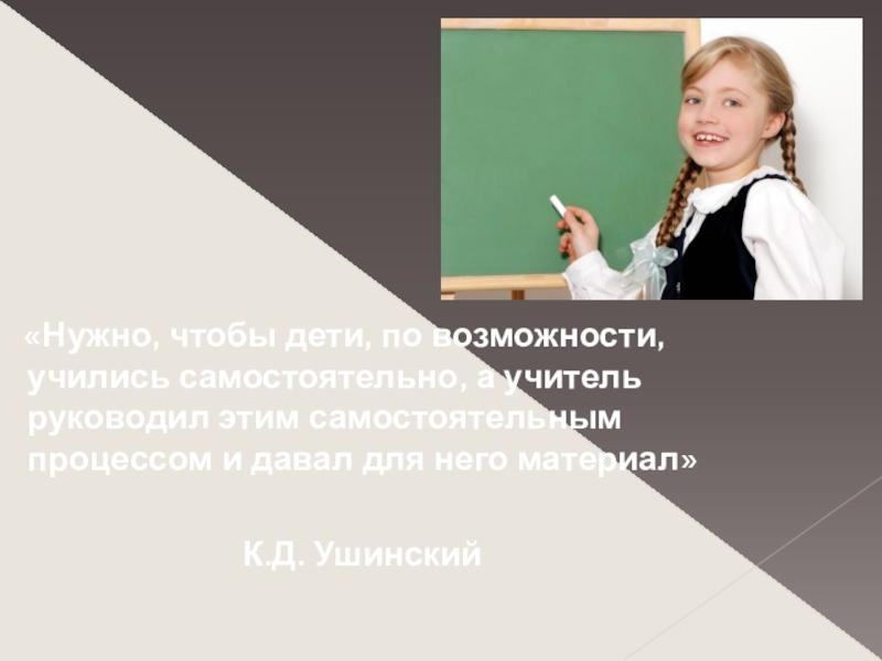 Слайд 3 «Нужно, чтобы дети, по возможности, учились самостоятельно, а учитель