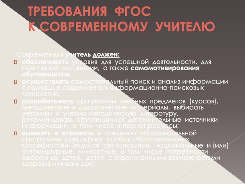 Слайд 1Основные требования ФГОС к личности современного учителя