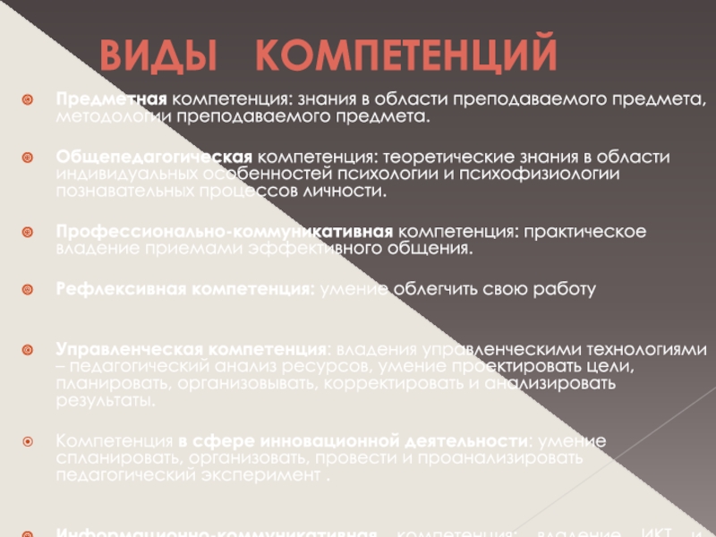 Слайд 8ВИДЫ КОМПЕТЕНЦИЙ
