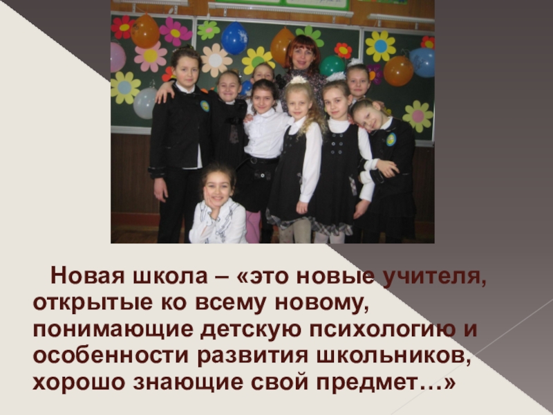Слайд 2 Новая школа – «это новые учителя, открытые ко
