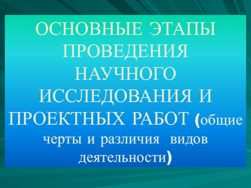 Слайд 29ОСНОВНЫЕ ЭТАПЫ ПРОВЕДЕНИЯ НАУЧНОГО ИССЛЕДОВАНИЯ И ПРОЕКТНЫХ РАБОТ (общие черты и