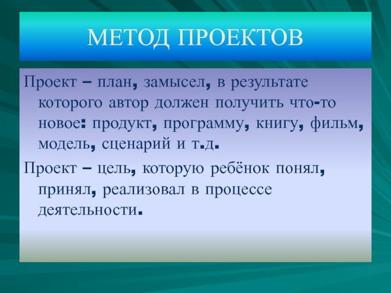 Проект – цель, которую ребёнок понял, принял, реализовал в процессе деятельности.