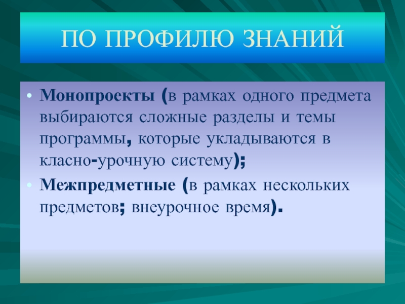 Монопроекты (в рамках одного предмета выбираются сложные разделы и