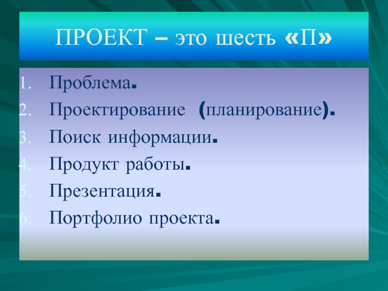 Проект есть слияние теории и практики. Он заключает в себе не только постановку определенной умственной задачи, но и практическое выполнение ее.