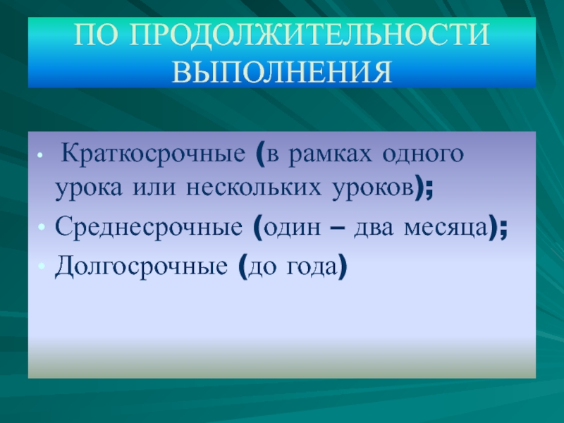 Слайд 12ПО ПРОДОЛЖИТЕЛЬНОСТИ ВЫПОЛНЕНИЯ
