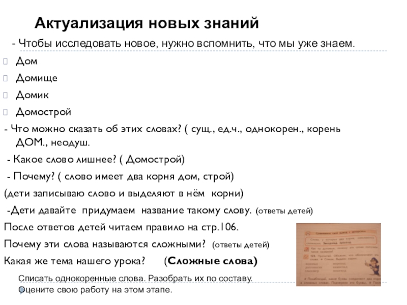 - Какова цель урока? (Узнать, как нужно соединить два корня, чтобы получилось сложное слово)