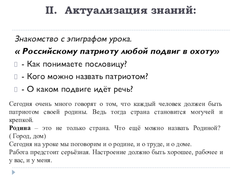 Сегодня на уроке мы поговорим и о родине, и о труде, и о доме.