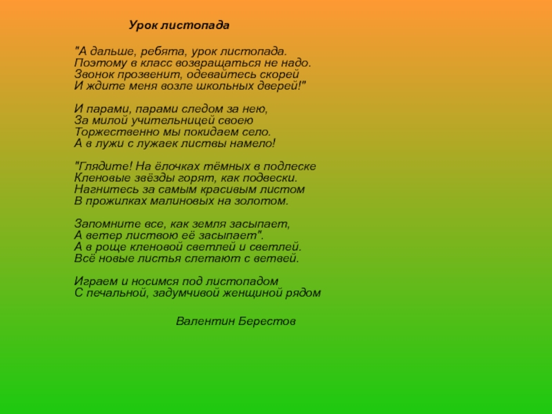 "А дальше, ребята, урок листопада.