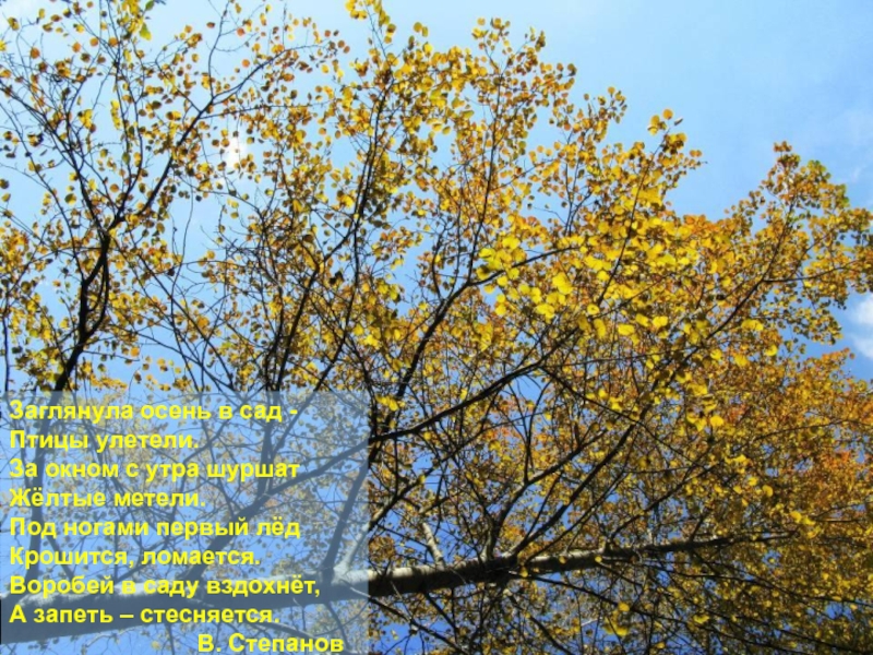 Слайд 7Заглянула осень в сад -