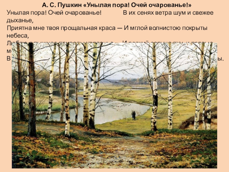 Слайд 3А. С. Пушкин «Унылая пора! Очей очарованье!»