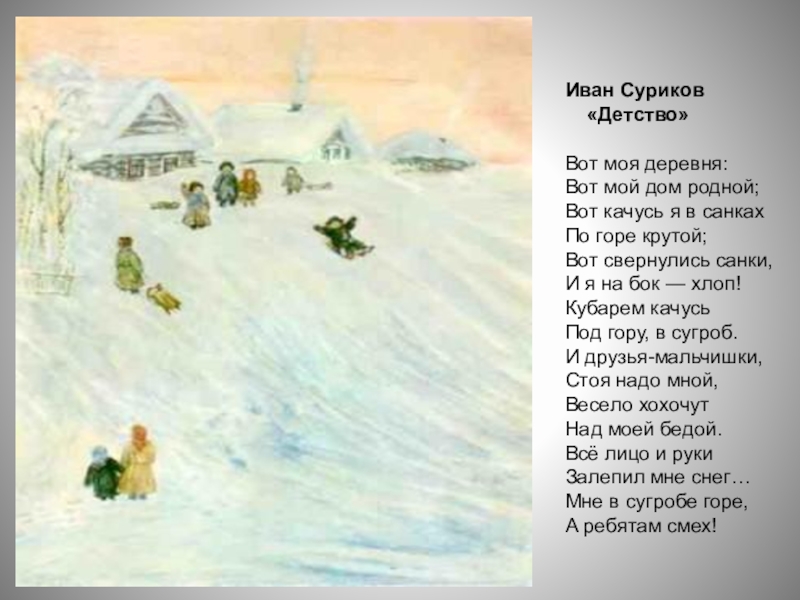 Иван Суриков   «Детство»Вот моя деревня: Вот мой дом родной; Вот качусь я в санках По