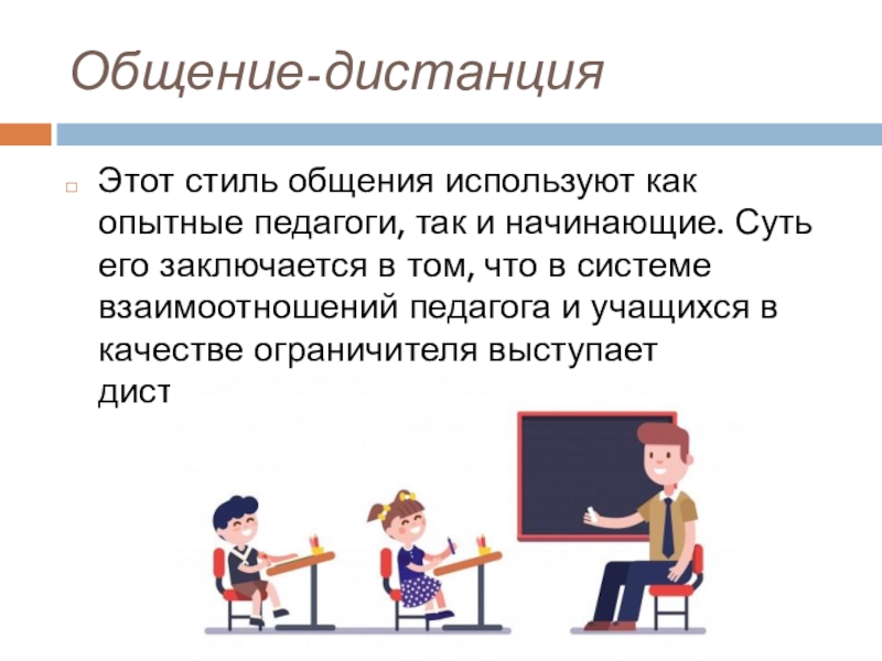 его заключается в том, что в системе взаимоотношений педагога и учащихся в качестве ограничителя выступает дистанция.