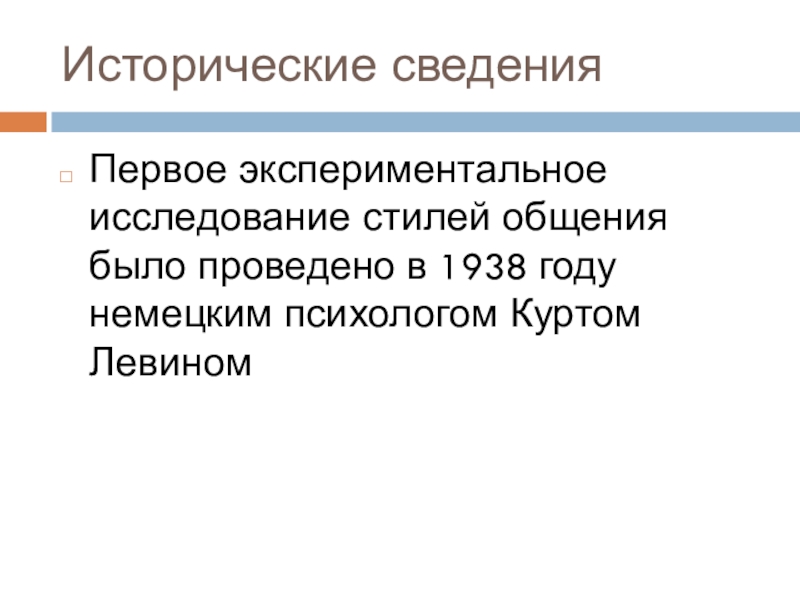 Первое экспериментальное исследование стилей общения было проведено в 1938 году