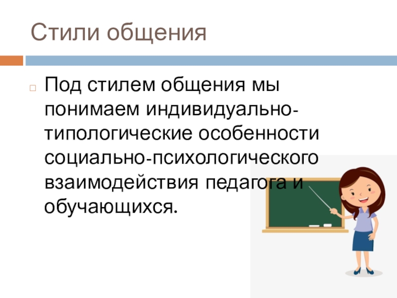 Под стилем общения мы понимаем индивидуально-типологические особенности социально-психологического взаимодействия педагога