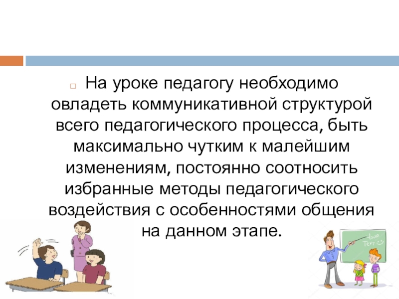 Слайд 10На уроке педагогу необходимо овладеть коммуникативной структурой всего педагогического процесса, быть