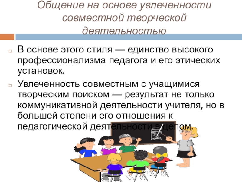 Увлеченность совместным с учащимися творческим поиском — результат не только коммуникативной деятельности учителя, но в большей степени его отношения к педагогической деятельности в целом.