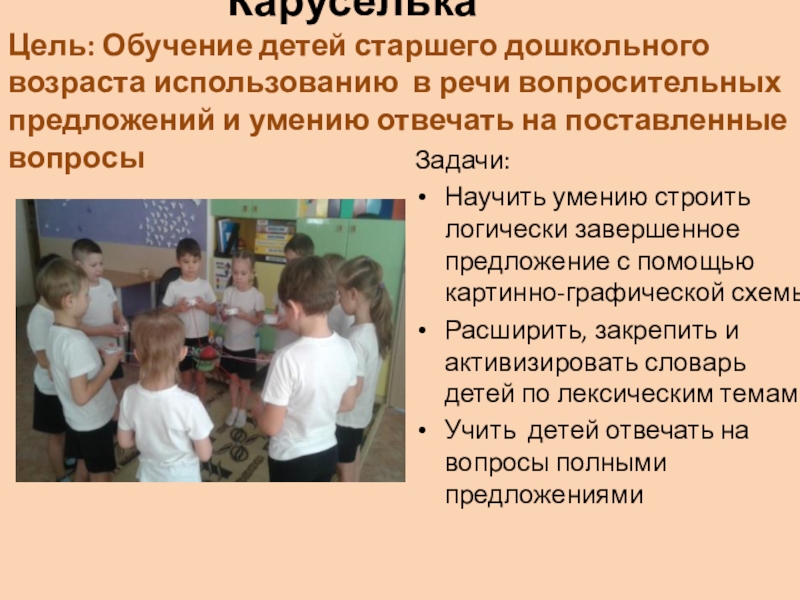 Научить умению строить логически завершенное предложение с помощью картинно-графической схемы.