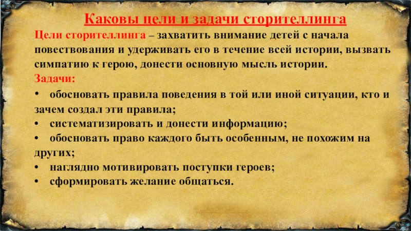 начала повествования и удерживать его в течение всей истории, вызвать симпатию к герою, донести основную мысль истории.